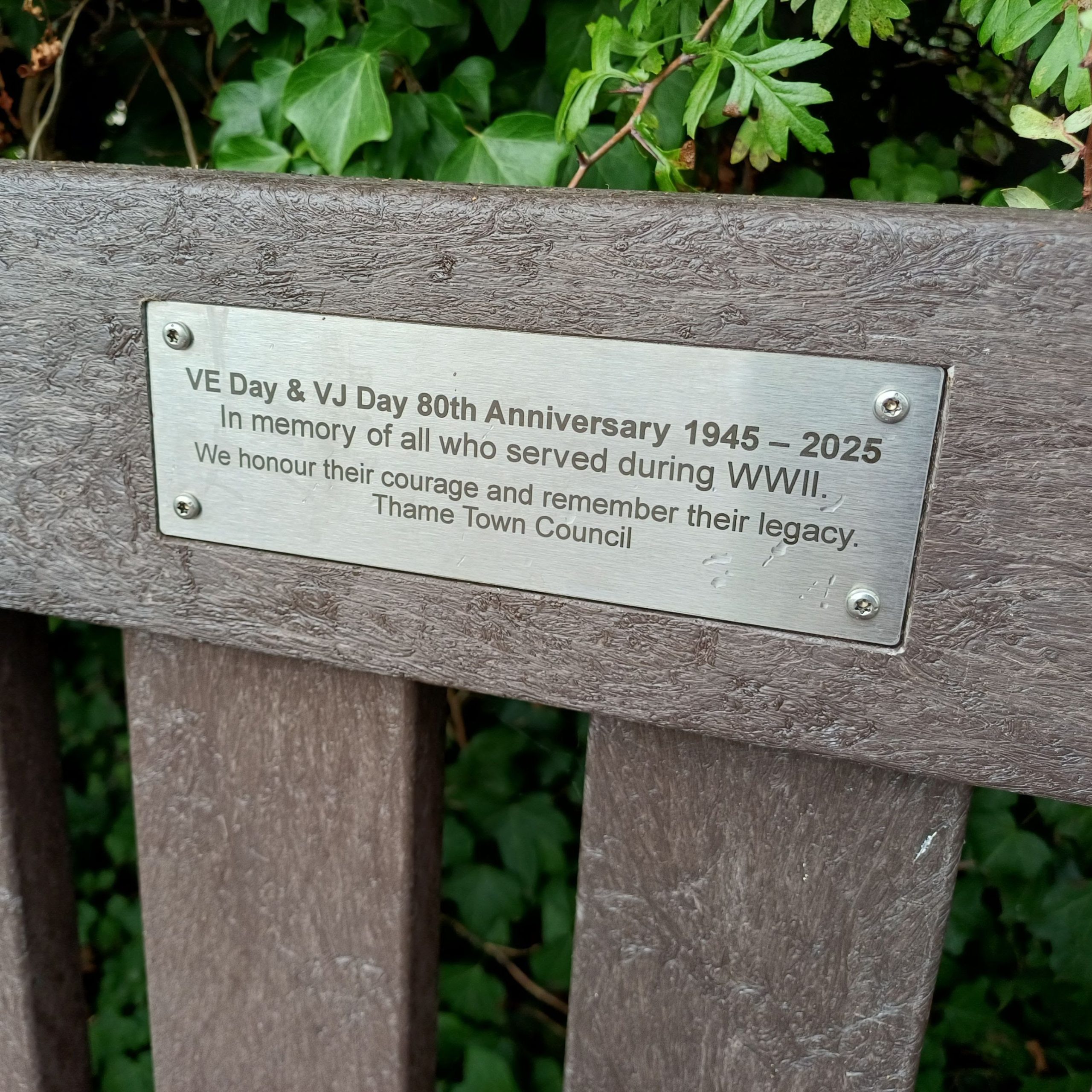 Thame Town Council has also chosen to dedicate the new bench as a memorial to mark VE80 and VJ80 in 2025, honouring 80 years since the end of the Second World War in Europe and the Pacific.