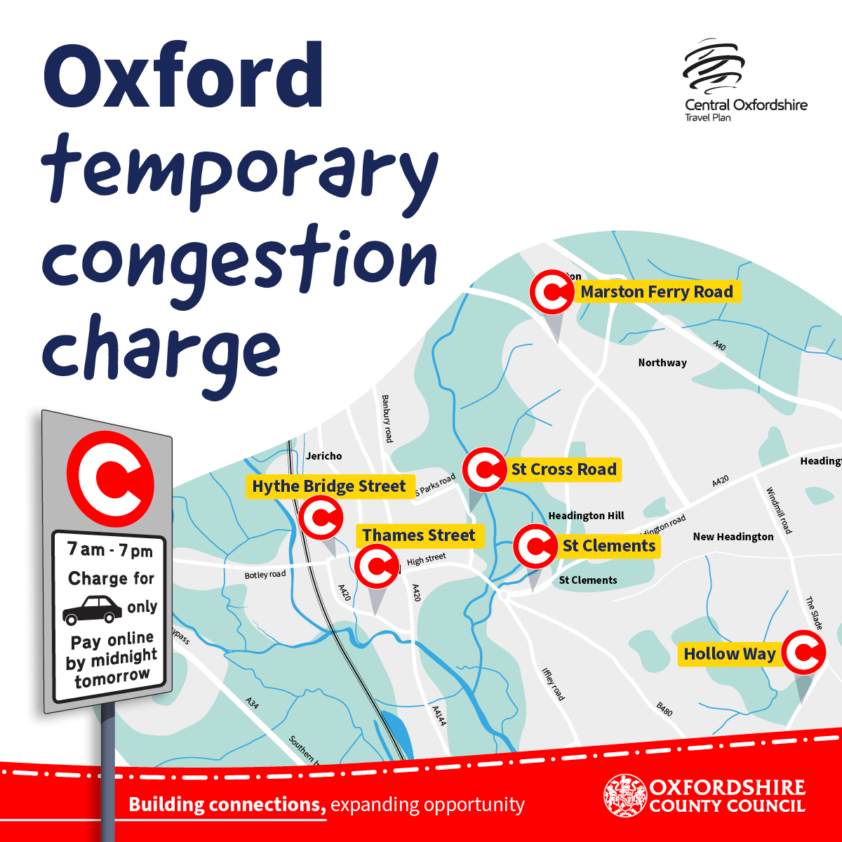From Wednesday 29 October there will be a temporary congestion charge on six roads in Oxford.